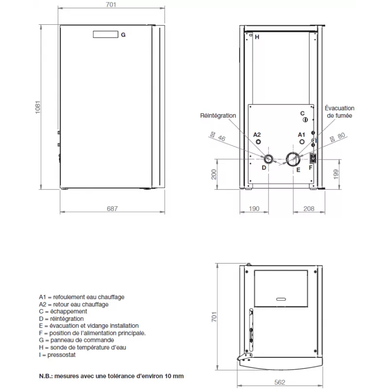- Installation : Évacuation postérieure ou latérale gauche, montée sur roulettes