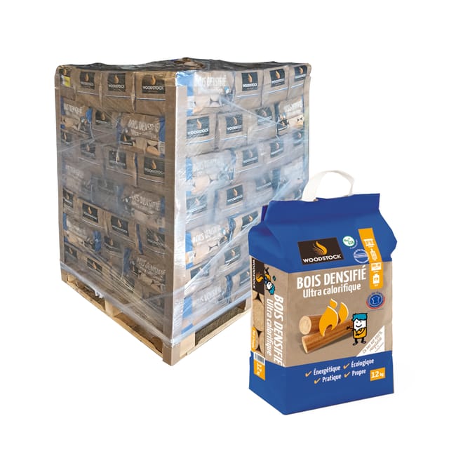 Bûches compressées WOODSTOCK 2 palettes, 208 sacs de 5 bûches, L25